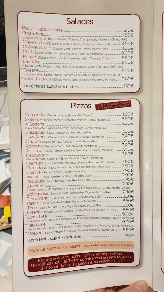 Welcome to Tartatou, a delightful gem situated at 188 Rue Jean Jaures in Villeneuve-d'Ascq, France. This charming eatery specializes in an array of delicious pizzas and classic French snacks, making it a haven for food enthusiasts. The menu celebrates both creativity and tradition, ensuring something for everyone.
